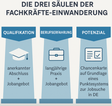 Das deutsche Einwanderungssystem für qualifizierte Arbeitskräfte basiert auf drei Säulen: